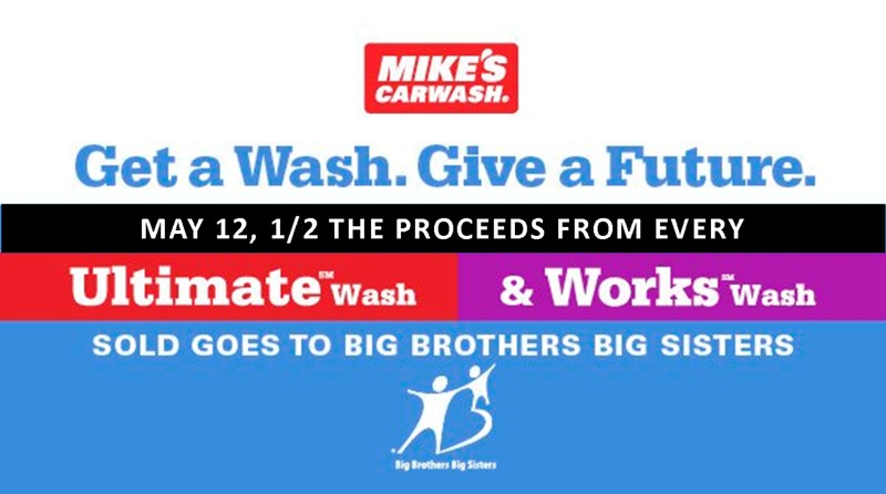 Have a few hours to volunteer for a great cause? On Saturday, May 12th Mike's Carwash will be holding a one-day fundraiser for Big Brothers Big Sisters!